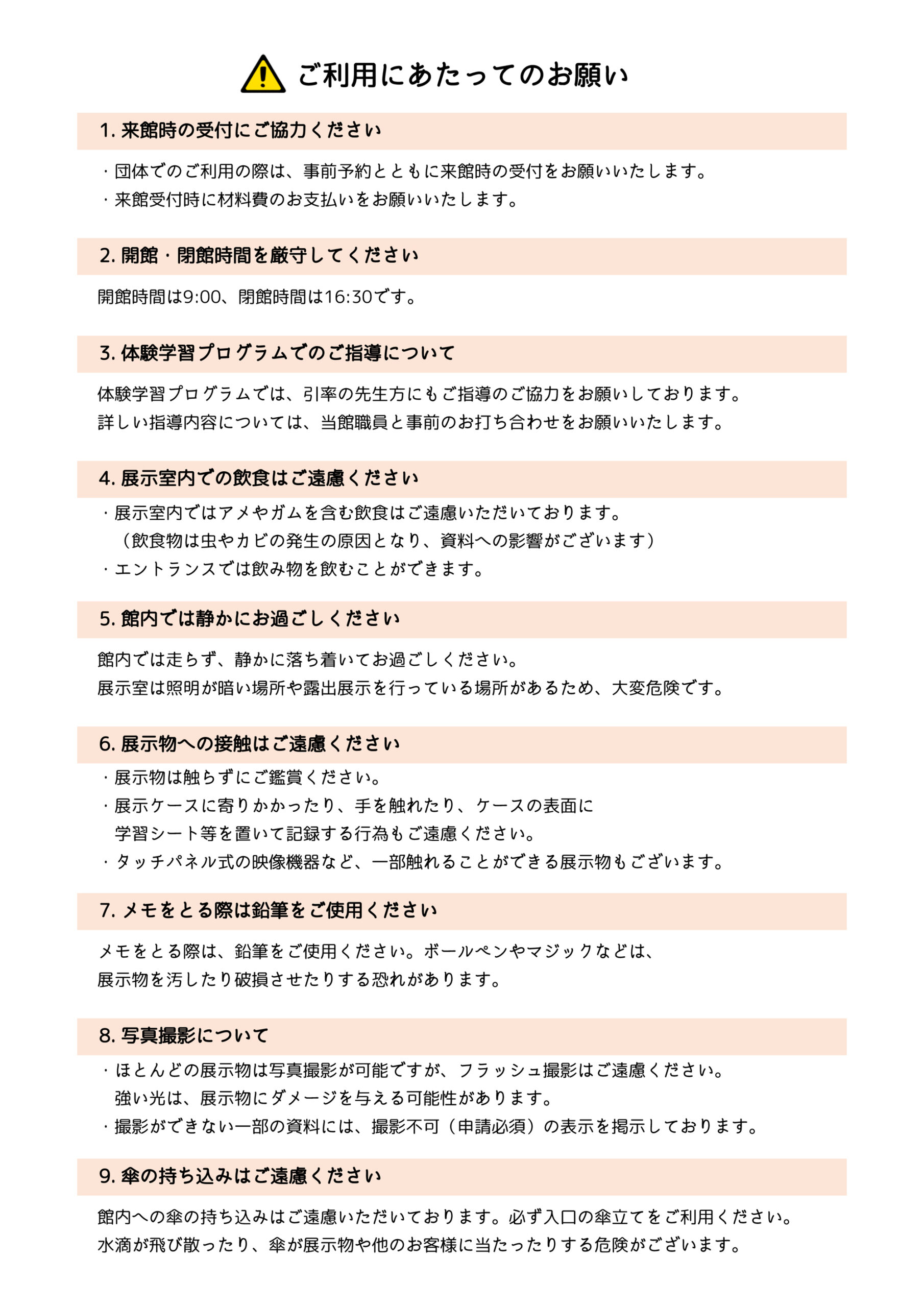 ご利用に当たってのお願い